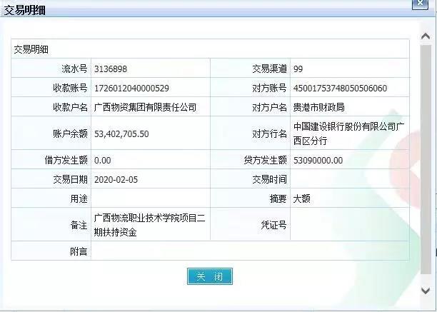 1.贵港市补助物流学院项目二期土地第二笔资金5309万今天下午向集团拨付到账。